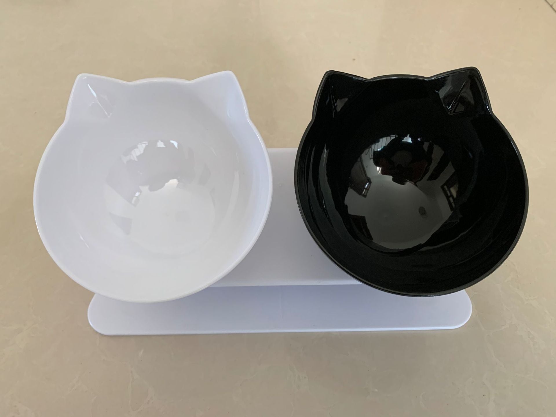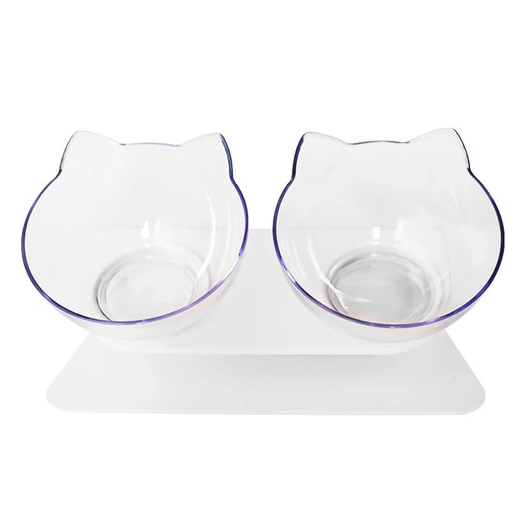 15° Adjustable Cat Bowl with Transparent PC Dish – Single or Double Feeding Bowl for Cats